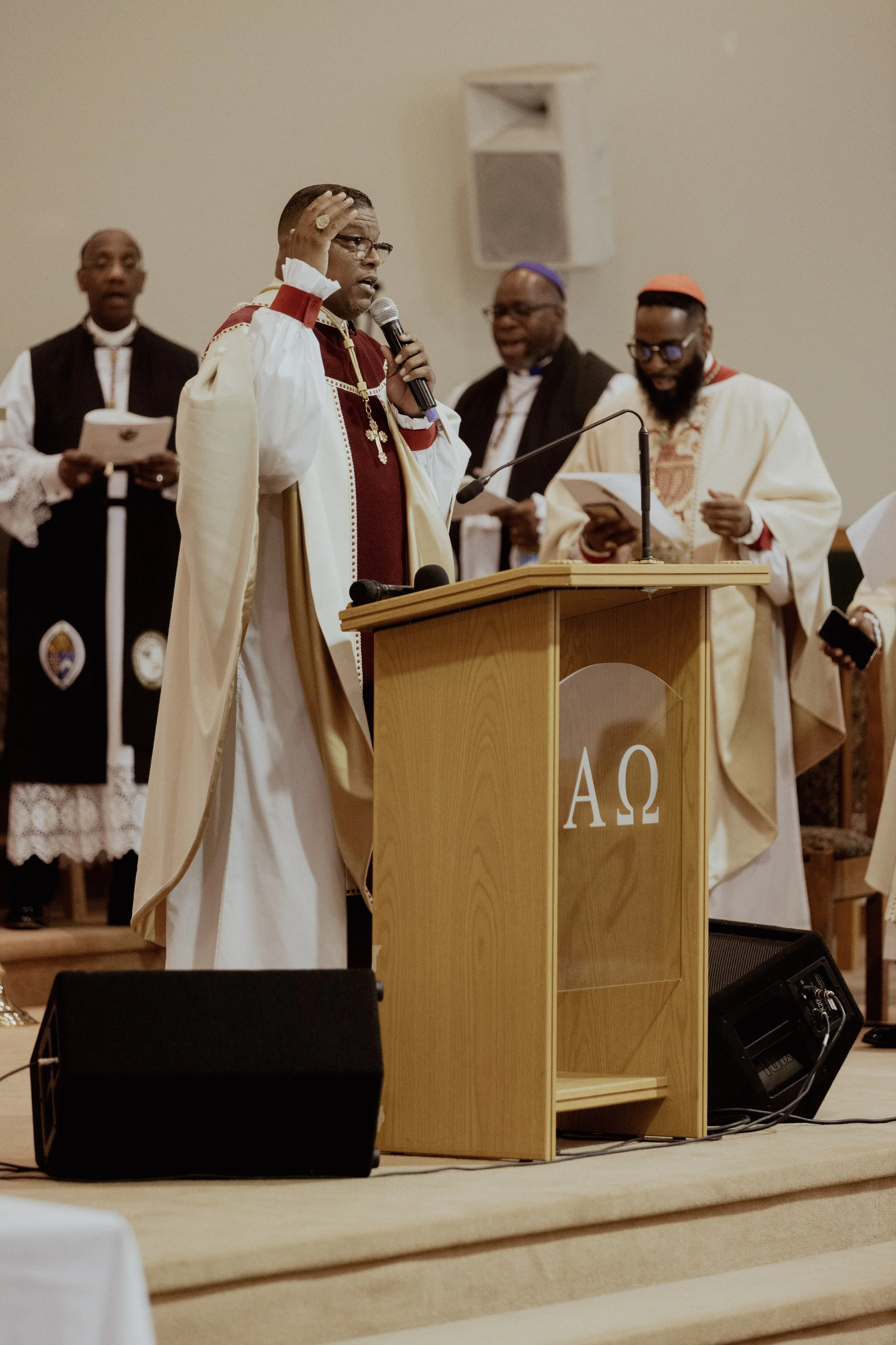Having served the Lord’s church for over two decades, his portfolio as a churchman is quite comprehensive. With his rich background in ecclesiastical order, worship and liturgy, Bishop Smith has garnered the respect of his peers. Some of his principal tasks and accomplishments have been organizing and preparing ceremonies for Episcopal Consecrations and Holy Ordinations and creating credentials for the same, establishing the New Covenant Christian Worship Center in Charlotte, North Carolina, and founding the accredited institution of Transfiguration Theological Seminary, where he currently serves as President. Bishop Smith continues to serve the universal Church as an Episcopal Consultant for various denominational leaders and is a sought-after authority in matters of ceremony, heraldry, liturgy and ecclesiastical protocol.